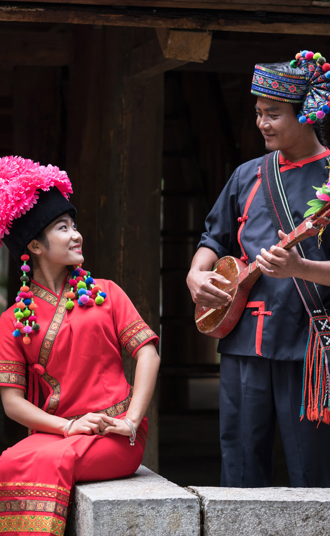 傣族人口約107萬人,主要分布在云南的德宏傣族景頗族自治州、西雙版納傣族自治州及瀾滄江流域的河谷壩子區(qū)域。傣族寨是進入民族村的第一個村寨,占地面積27畝,三面環(huán)水,綠樹掩映。一幢幢“干欄式”傣家竹樓,通過蜿延的紅砂石小徑聯(lián)向肅穆的緬寺。巍峨壯觀的白塔,精巧玲瓏的風(fēng)雨橋,以及風(fēng)雨亭、水井、鐘亭等建筑充滿著傣家的濃郁風(fēng)情,是傣寨真實的民間景觀再現(xiàn)。一年一度的“潑水節(jié)”期間,這里都有活潑歡快的“象腳鼓舞...